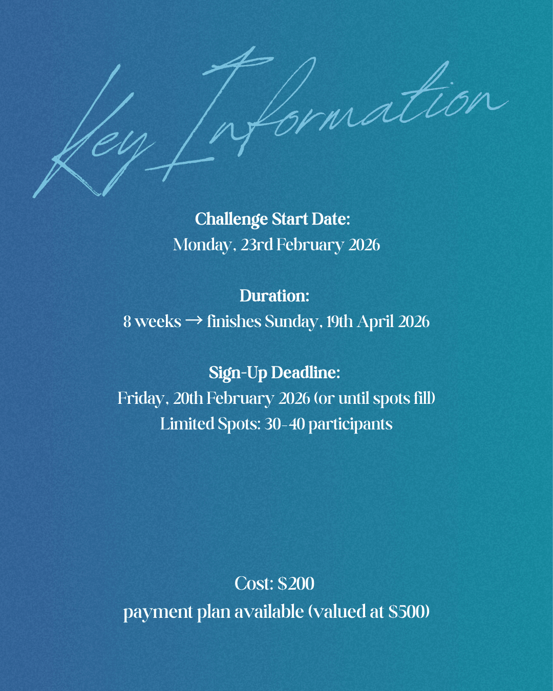 You’ll follow structured strength training, simple nutrition guidance, and weekly accountability, all while learning how to stay consistent long after the challenge ends.